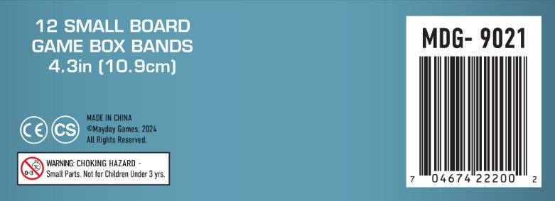 This is a 12-pack of 4.3 inch board game bands, these are ideal for smaller boxed games the size of Incan Gold, Money or other smaller games. We sell these in several other sizes as well.